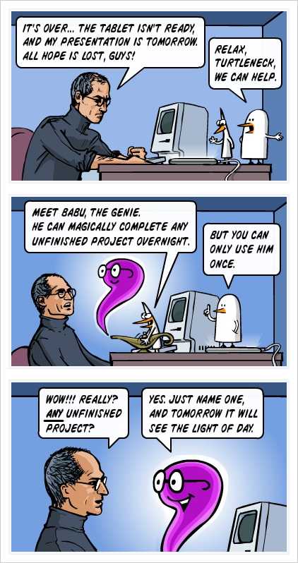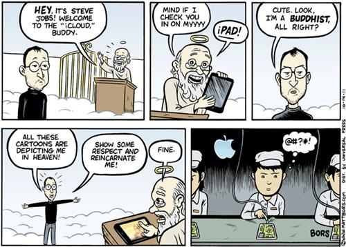 Κατα καιρούς διάφοροι καλλιτέχνες έχουν δημιουργήσει τα δικά τους κόμιξ και σκιτσογραφίες για τον Steve Jobs. Εμείς διαλλέξαμε μερικά και σας τα παρουσιάζουμε παρακάτω.